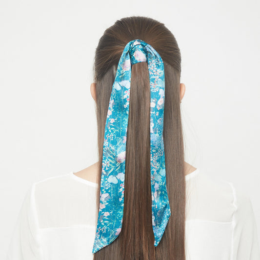 100% Silk Skinny Scarf Flower Field