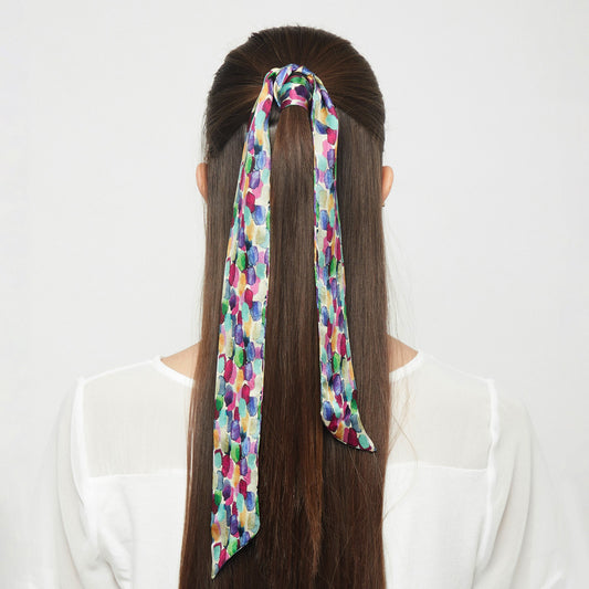 100% Silk Skinny Scarf vibrant abstract
