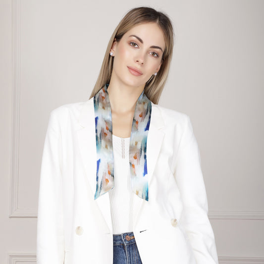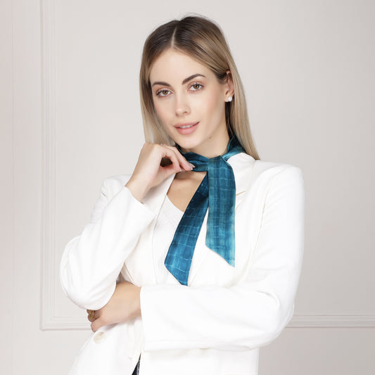 100% Silk Skinny Scarf Geometrical