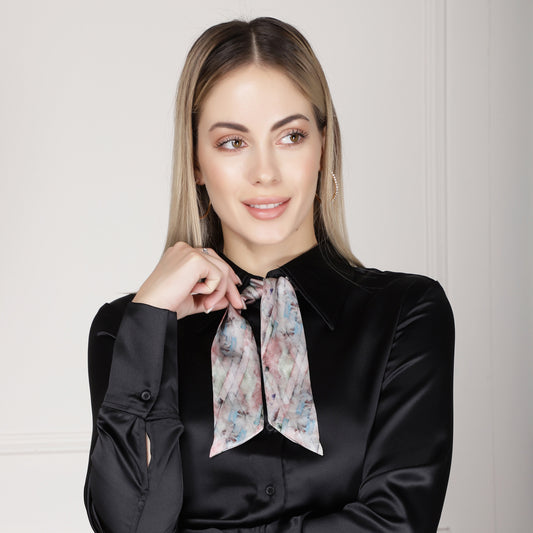 100% Silk Skinny Scarf Abstract Wash