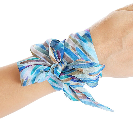 100% Silk Skinny Scarf Tie and Dye Blues