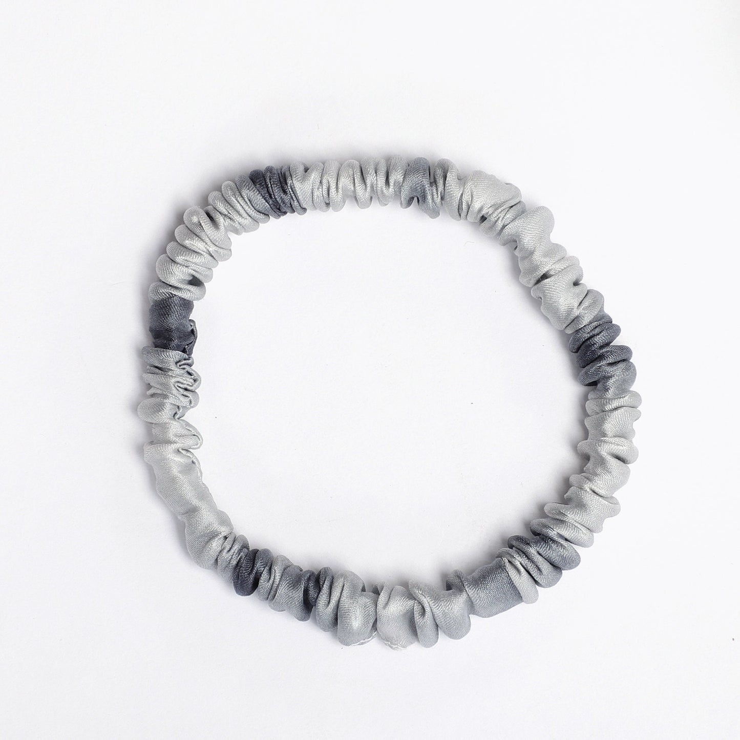 100% Silk Skinny Scrunchie Tie and Dye Greys