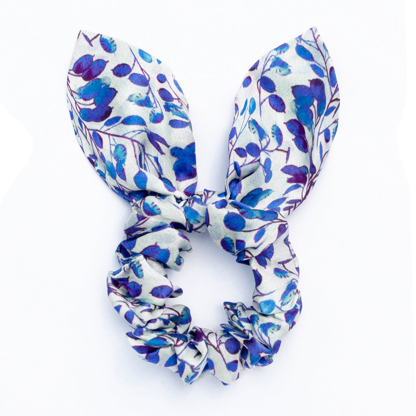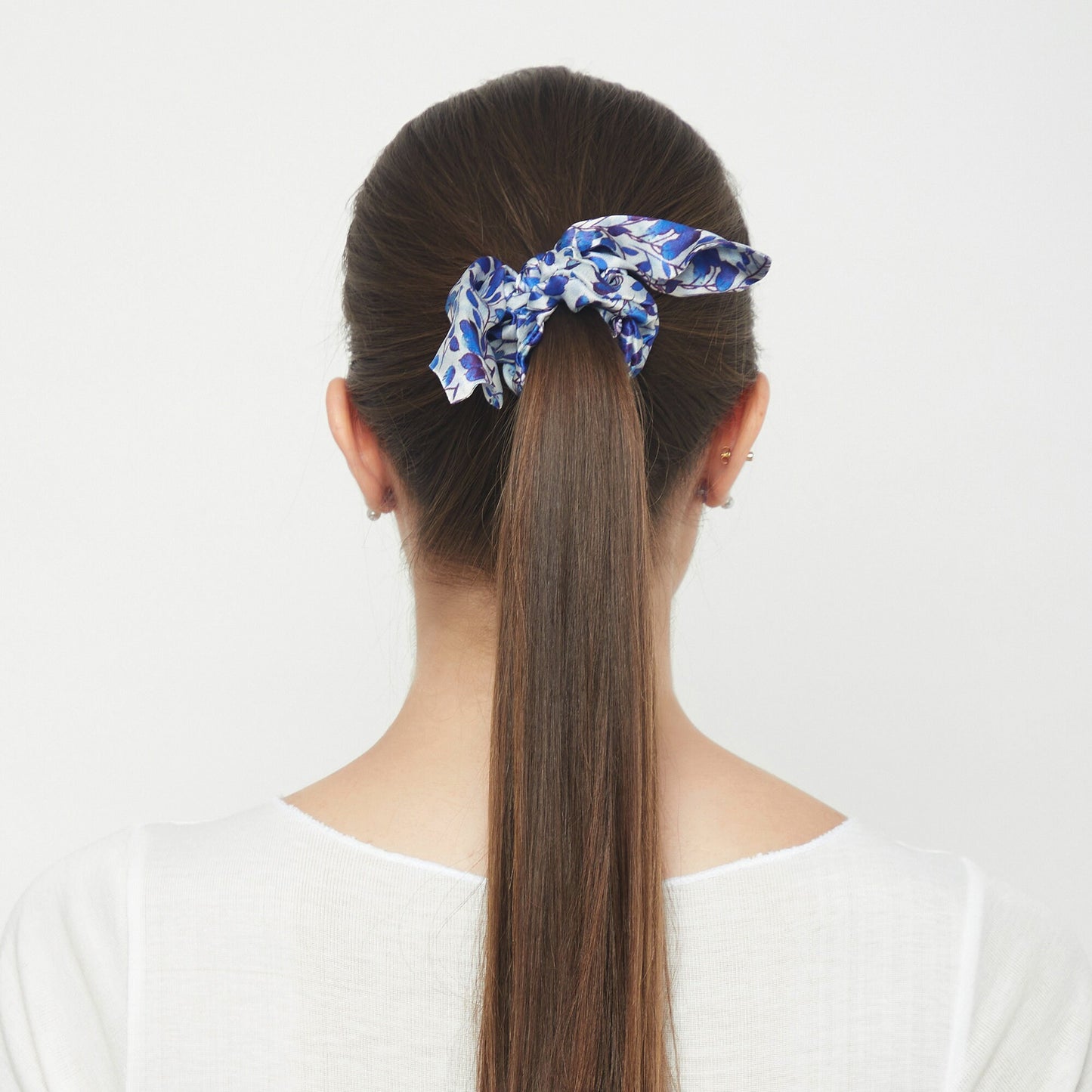 This unique knotted bow silk scrunchie is adorned with a delightful hand painted ditsy floral pattern. These elegant and luxurious bunny ears bow silk scrunchies are really versatile and a great addition to your wardrobe to enhance anything you wear either for a special occasion, casually or professionally. You can wear this beautiful scrunchie around your hair or wrist.