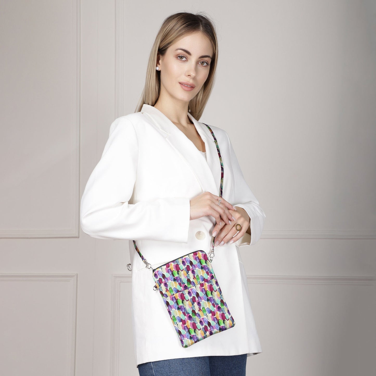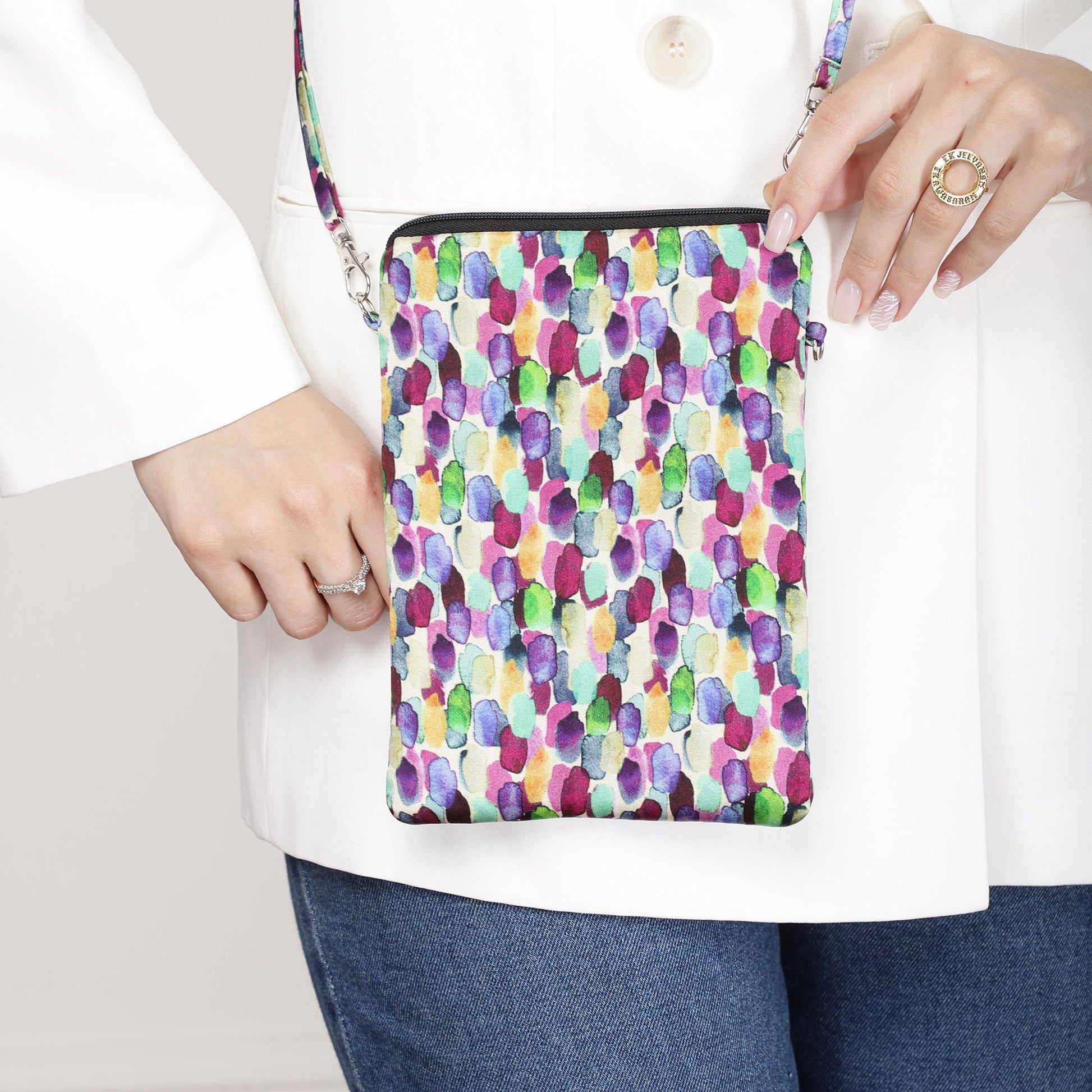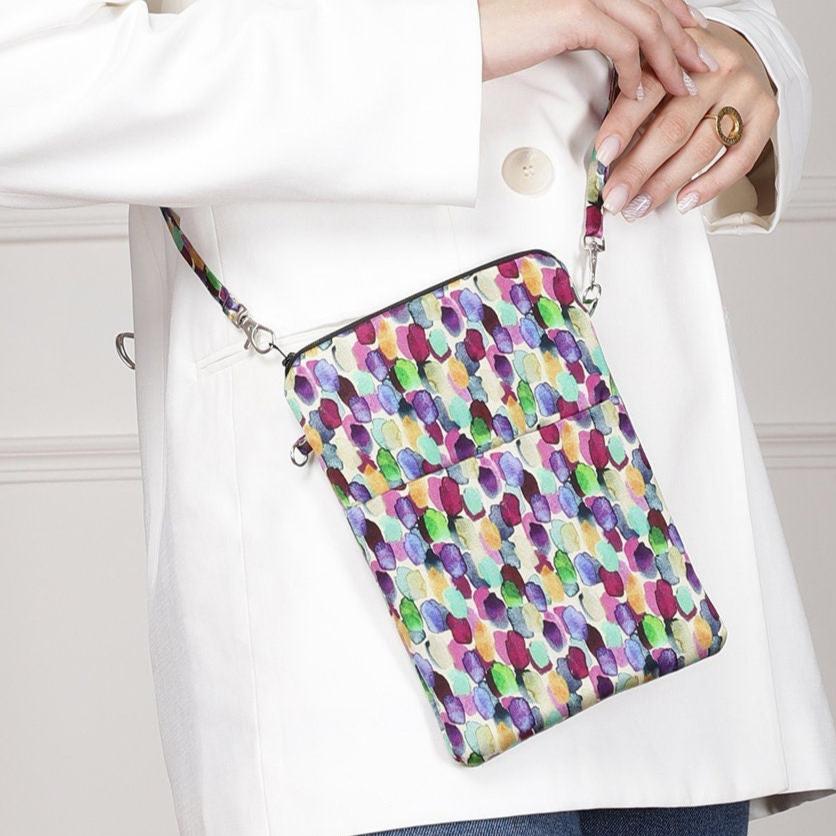 This unique and luxurious silk zipped and padded crossbody bag by Pattern Passion is a handy and smart way to carry the most important things like phone, keys, cards, paper money, make-up or jewellery.