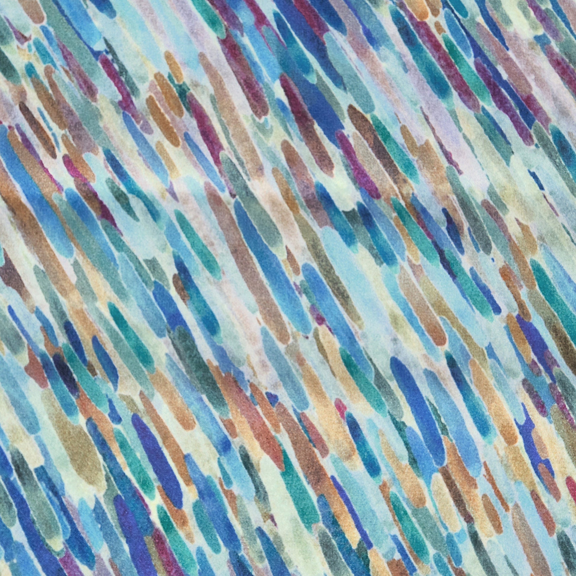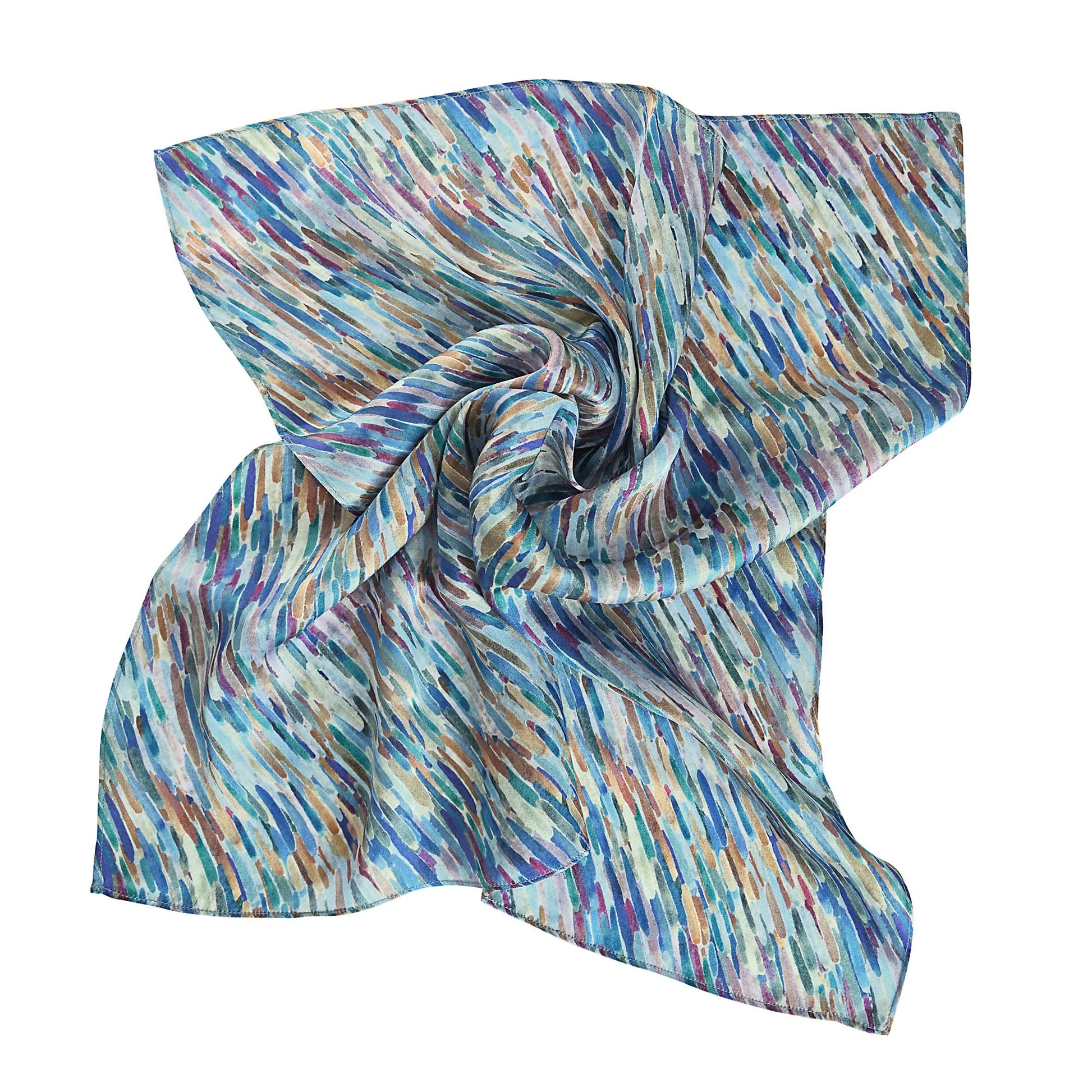 This unique silk neckerchief is adorned with a vibrant hand painted abstract design. I thoroughly enjoyed creating this lovely pattern. This elegant and luxurious scarf goes equally well with jeans, formal outfits or evening wear providing fashion as well as practicality. My designs answer the demands of smart office wear and equally the softer country look or evening wear. The fine quality silk provides warmth and luxuriously feel.