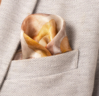 This unique luxury pocket square is made from very fine 100% silk and printed with a unique handpainted organic design. Pocket squares are versatile men's accessories which instantly bring in pattern and style in the look. This special silk pocket square tucks nicely into your pocket to give that luxurious and special feel. It's a perfect gift for men for special occasions or for yourself.