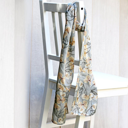 Long Hand roll hemmed Silk Scarf skeletal leaves