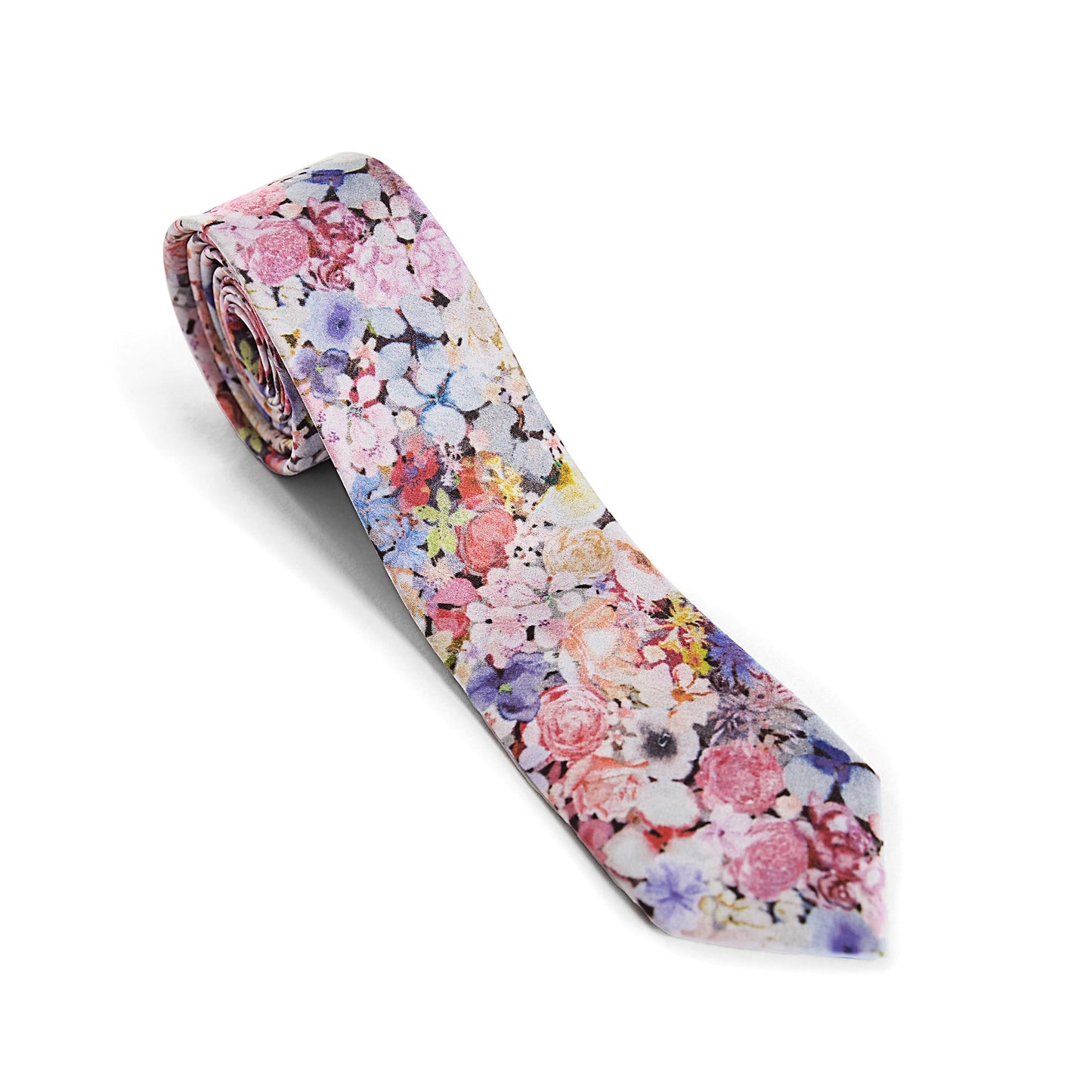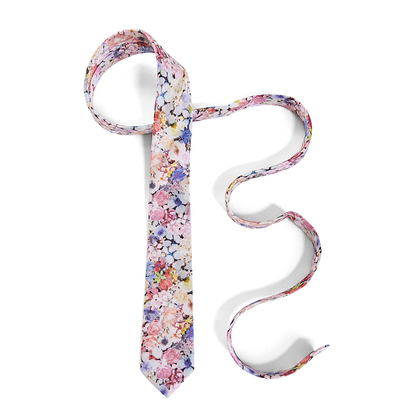 Tiny blooms- Set of silk tie slim / skinny and matching silk pocket square