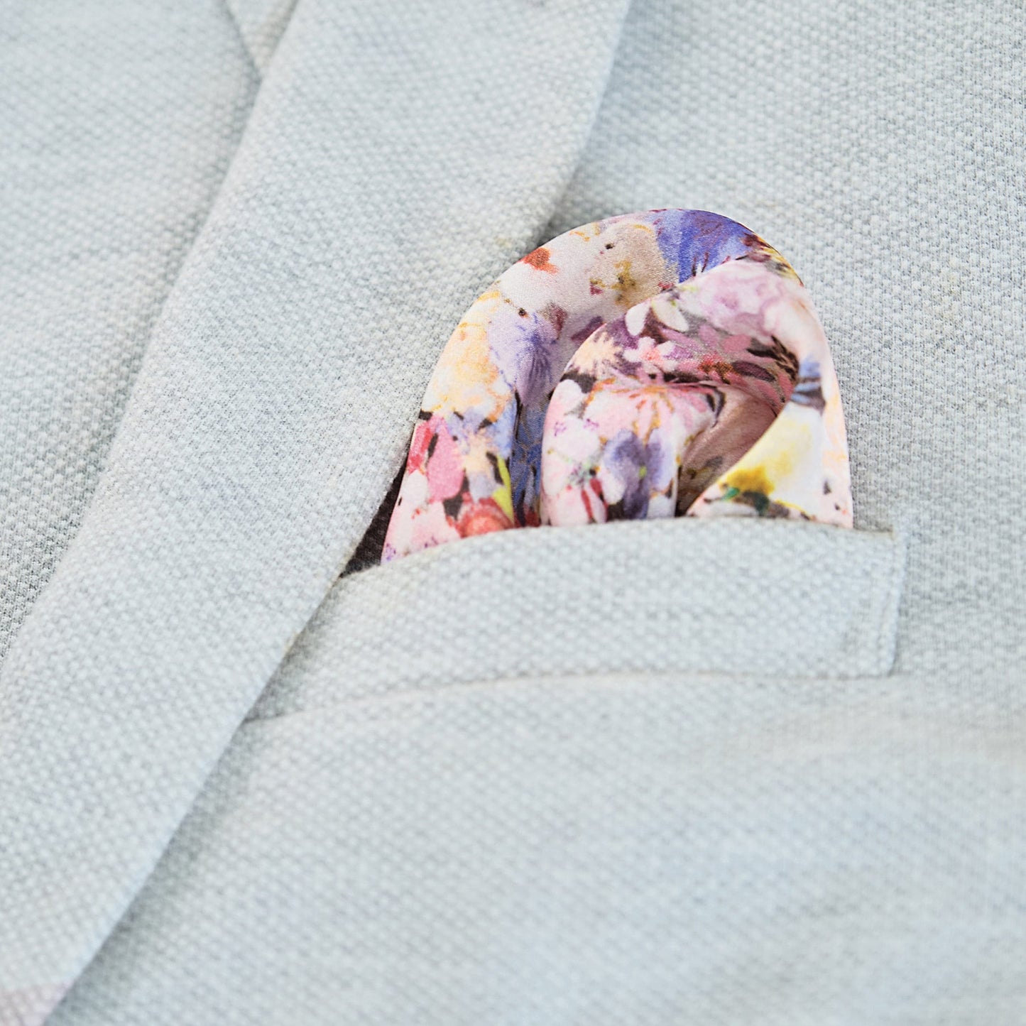 Silk Pocket Square: Complete your ensemble with this gorgeous hand-painted silk pocket square, the epitome of refined elegance. Crafted from luxuriously soft silk, this pocket square is meticulously adorned with intricate design that showcase the beauty of hand- painted art. Whether tucked into a suit pocket or styled in a more casual manner, this pocket square adds a touch of sophistication and individuality to any outfit, making it a versatile accessory for any discerning gentleman.