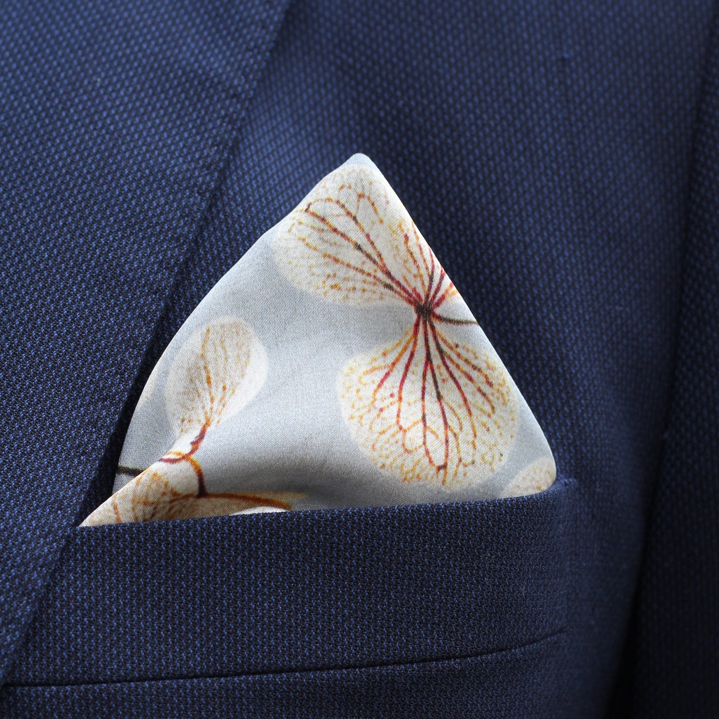 Silk Pocket Square: Complete your ensemble with this gorgeous hand-painted silk pocket square, the epitome of refined elegance. Crafted from luxuriously soft silk, this pocket square is meticulously adorned with intricate design that showcase the beauty of hand- painted art. Whether tucked into a suit pocket or styled in a more casual manner, this pocket square adds a touch of sophistication and individuality to any outfit, making it a versatile accessory for any discerning gentleman.