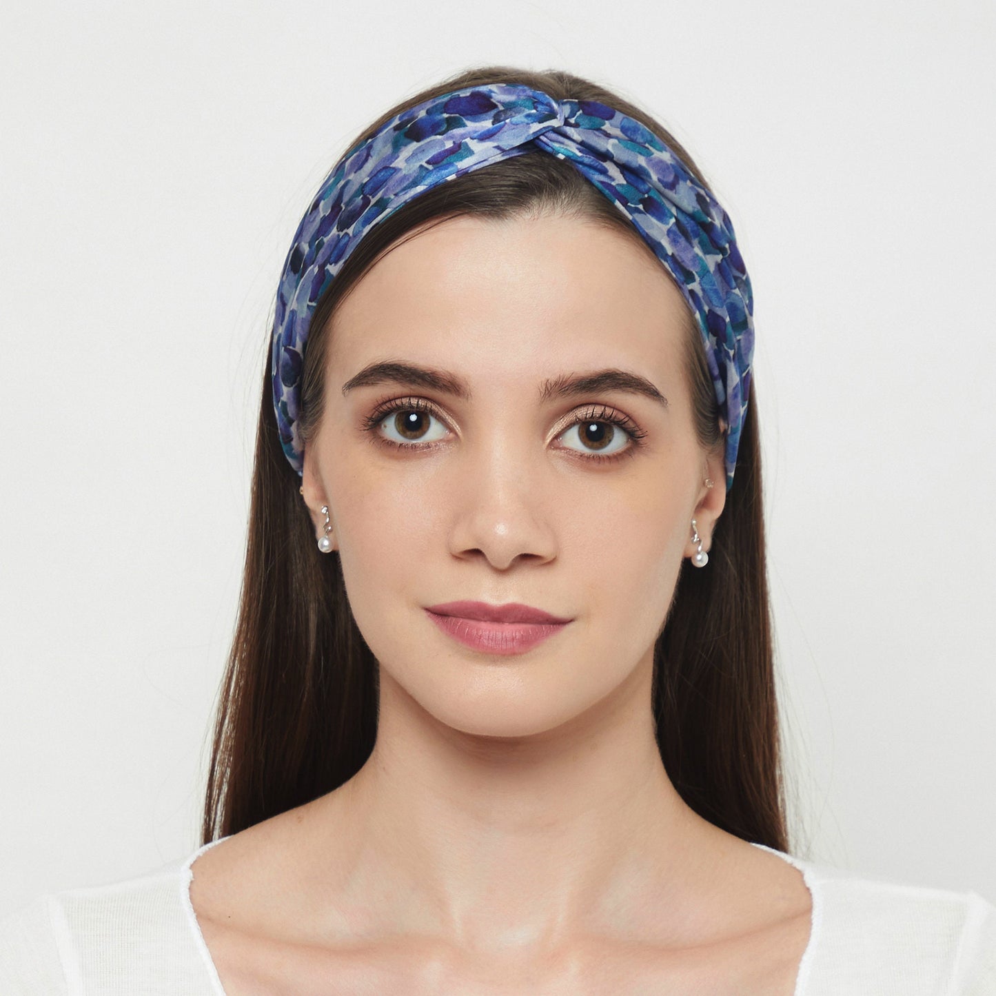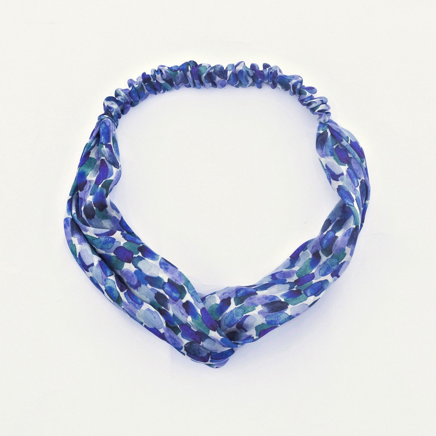 This unique silk headband is adorned with a vibrant hand-painted abstract design inspired by beautiful mesmerizing shades of blue skies. I thoroughly enjoyed creating this lovely pattern. Add a dash of colour and style to your look with this unique headband. This luxurious headband holds you hair in place and is so beautiful it is bound to get you compliments. The soft silk prevents any friction with hair and reduces tension. It is elasticated at the bottom so one size fits all. Each silk headband is special. An ideal gift for yourself or a dear one.