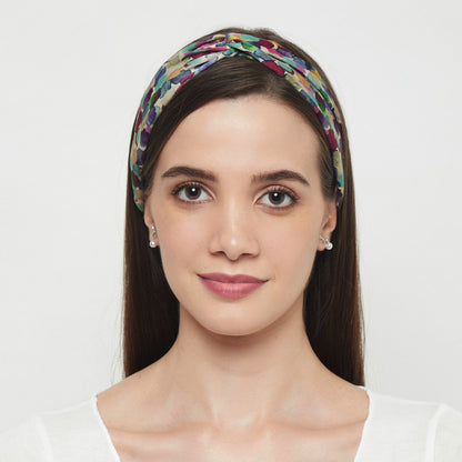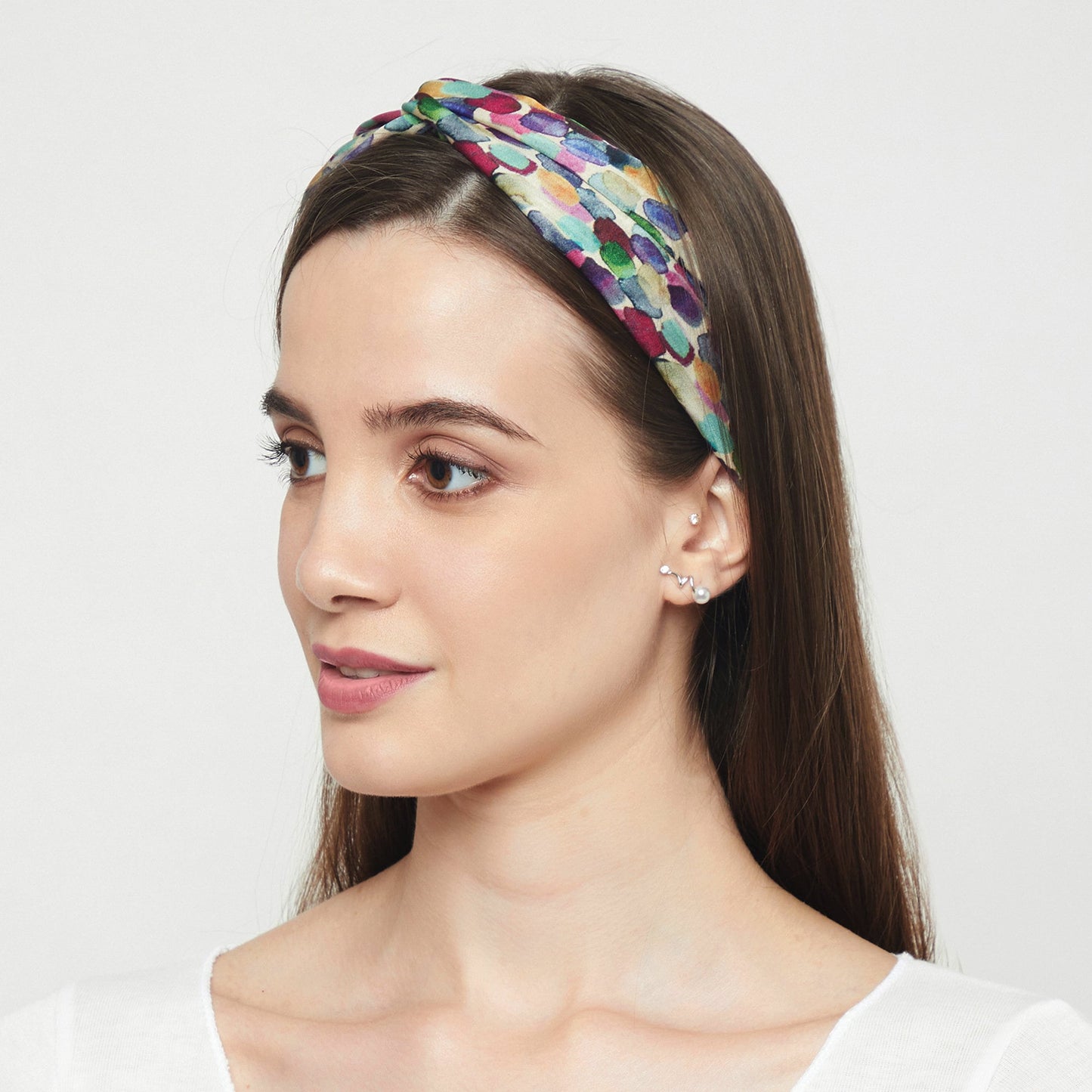 This unique silk headband is adorned with a beautiful vibrant hand painted brush strokes design. I thoroughly enjoyed creating this lovely pattern. Add a dash of colour and style to your look with this unique headband. This luxurious headband holds you hair in place and is so beautiful it is bound to get you compliments. The soft silk prevents any friction with hair and reduces tension. It is elasticated at the bottom so one size fits all. Each silk headband is special. An ideal gift for yourself or a dear one.