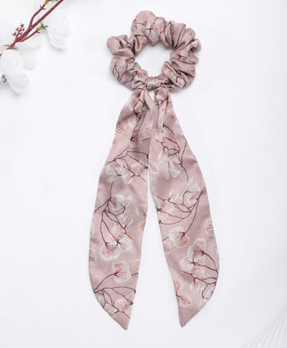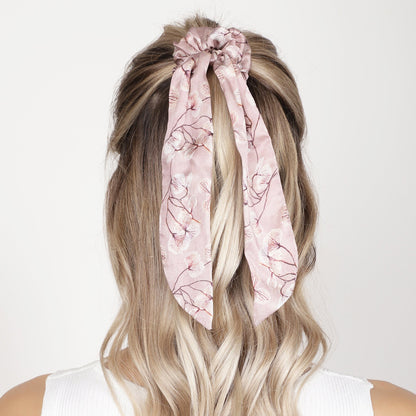 100% Silk Scarf Scrunchie Skeletal Leaves Blush