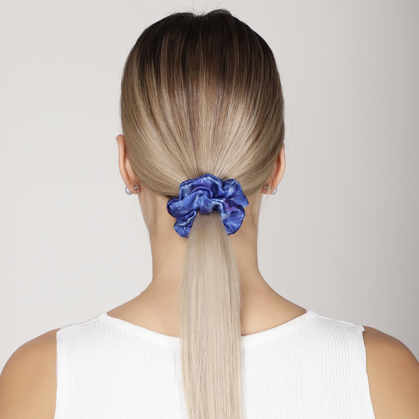 This luxurious hair accessory is really soft against your hair and is bound to get you compliments. These lovely scrunchies are non slip and non snag. They are very gentle on your hair whether you use them for pony tail, top knot or braid. The elastic is covered with very high quality satin silk which is printed with beautiful hand made pattern created by me. The soft silk prevents any friction with hair and reduces tension. Each silk scrunchie is special. An ideal gift for yourself or a dear one.
