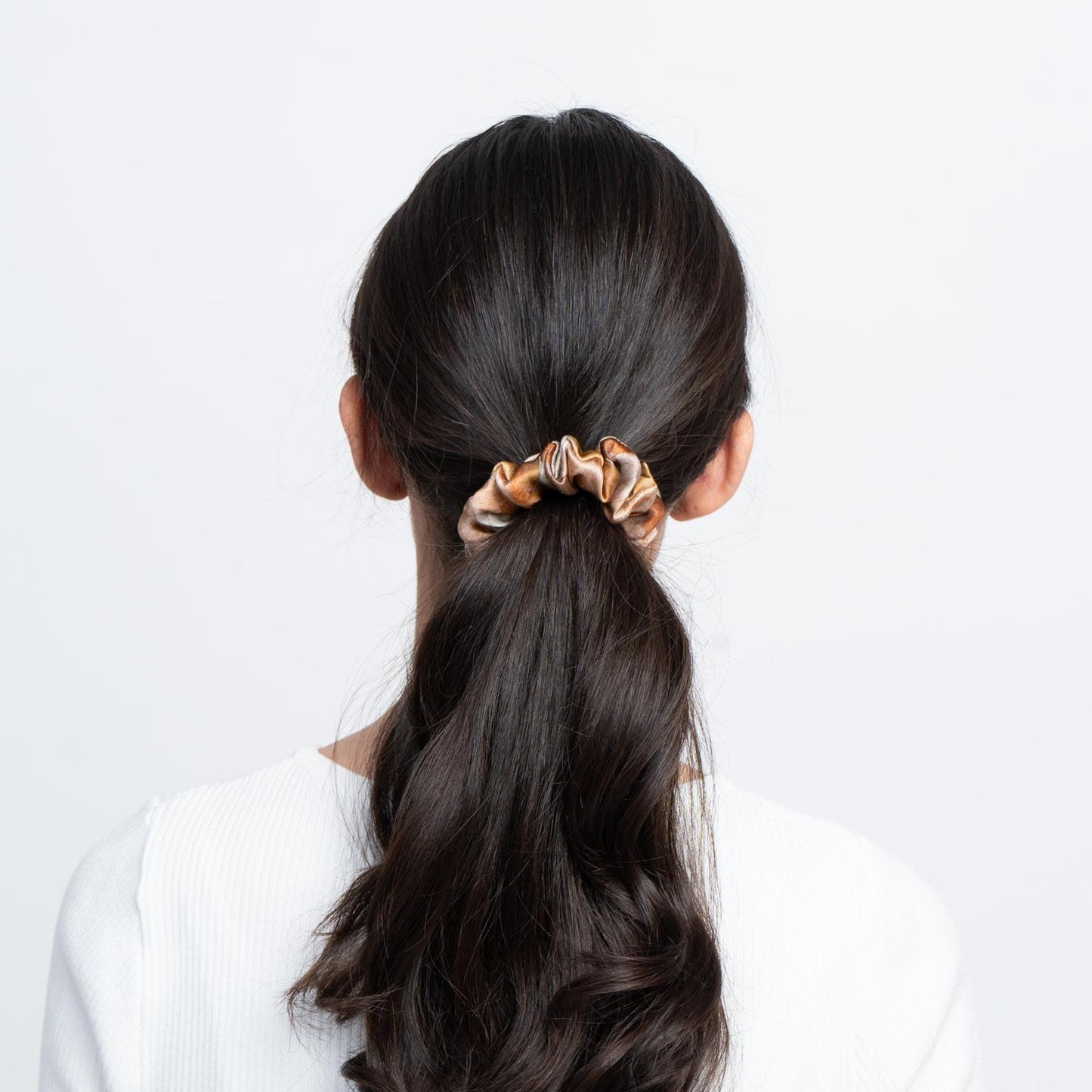 This luxurious hair accessory is really soft against your hair and is bound to get you compliments. These lovely scrunchies are non slip and non snag. They are very gentle on your hair whether you use them for pony tail, top knot or braid. The elastic is covered with very high quality satin silk which is printed with beautiful hand made pattern created by me. The soft silk prevents any friction with hair and reduces tension. Each silk scrunchie is special. An ideal gift for yourself or a dear one.